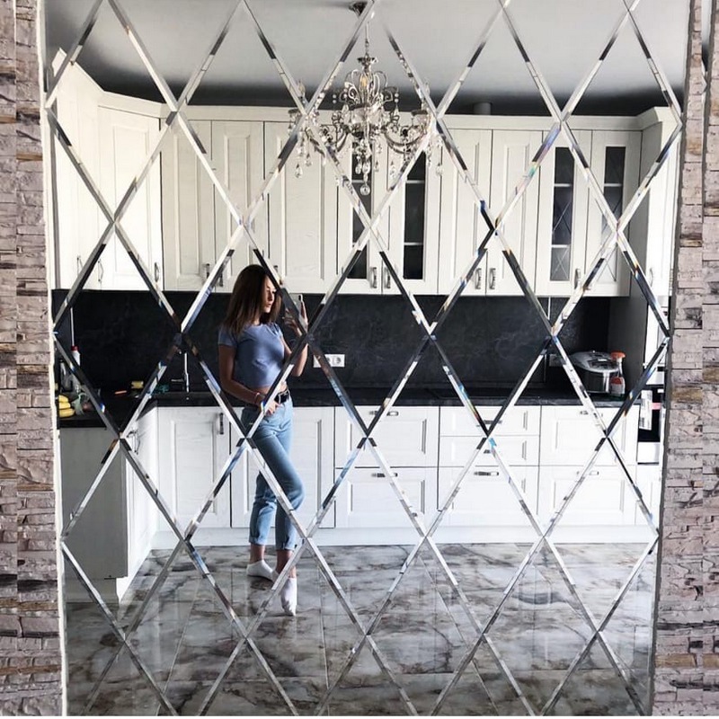 Использована зеркальная плитка "вытянутый ромб" с фацетом.