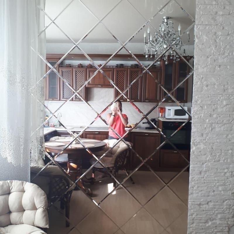 Использована серебристая зеркальная плитка "вытянутый ромб".
